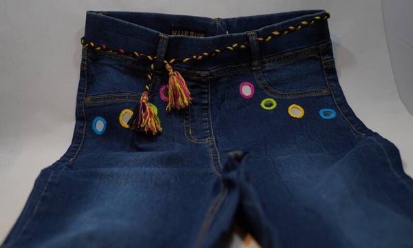 en:These unique jeans, featuring exquisite hand embroidery by women in Pakistan, are truly one of a kind. Each pair is not only a distinctive fashion statement but also directly supports the livelihoods of these skilled artisans.